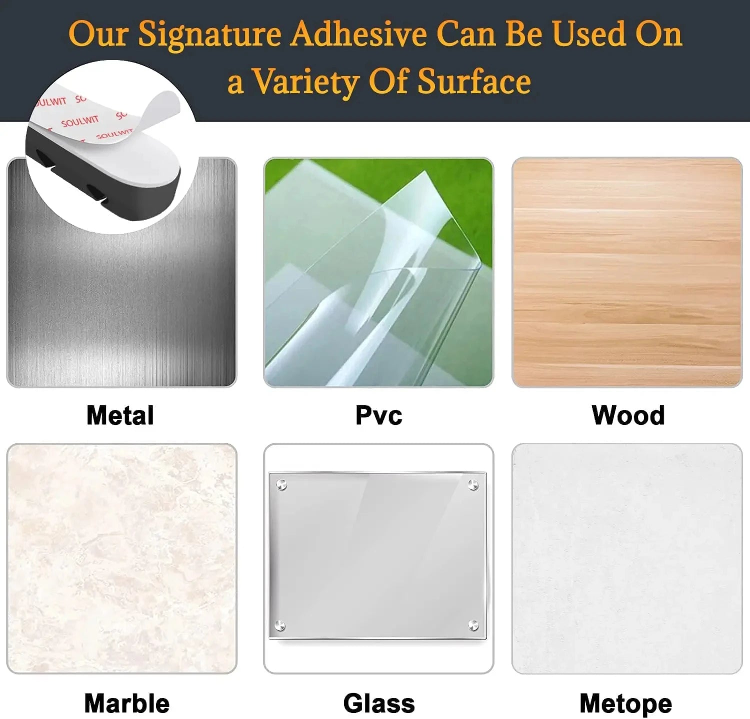 - Adhésif puissant : retirez le film et collez sur une surface propre et lisse